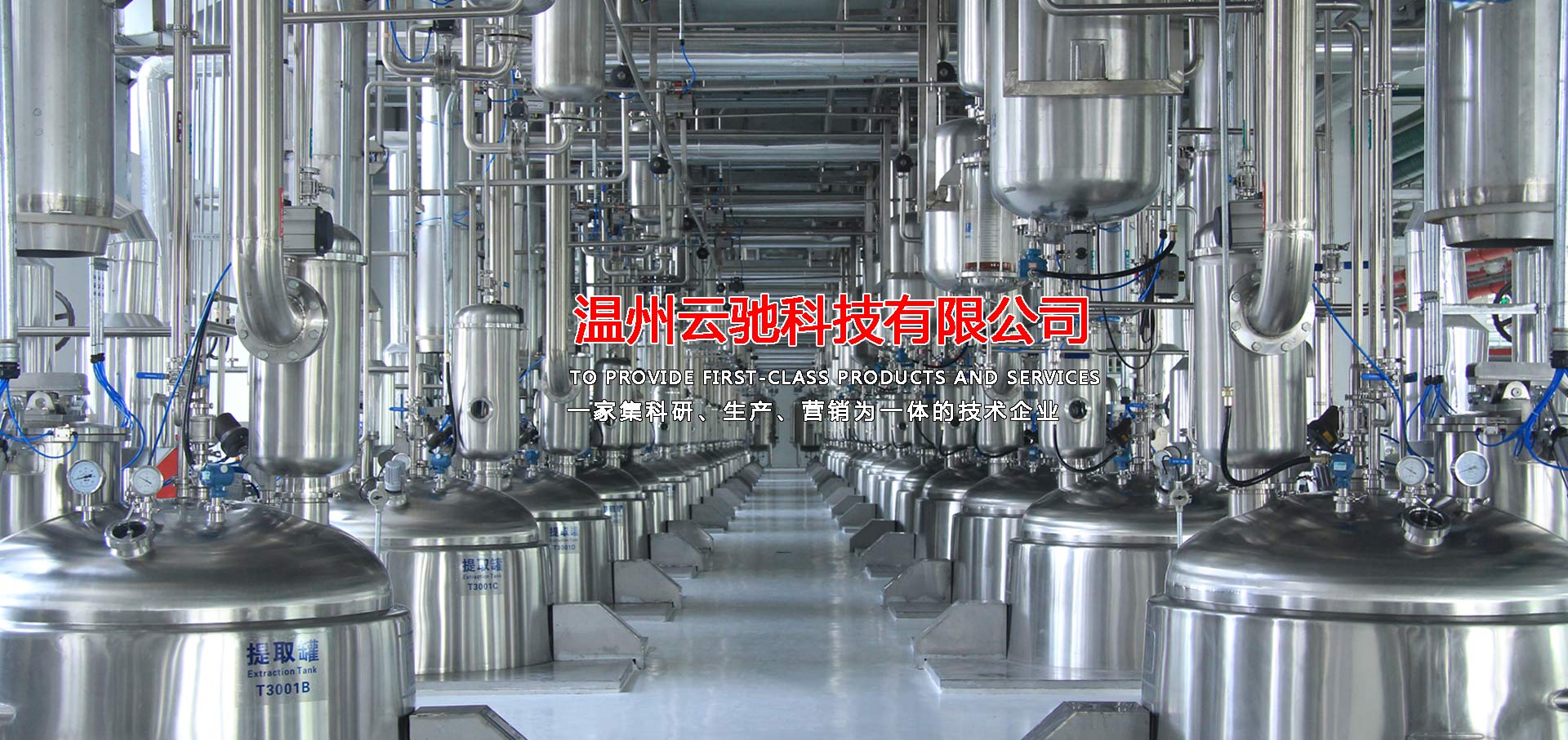 溫州云馳科技有限公司是一家集科研、生產(chǎn)、營銷為一體的技術(shù)企業(yè),本公司生產(chǎn)的中藥提取、濃縮、蒸發(fā)及有機溶媒回收設(shè)備,衛(wèi)生級不銹鋼容器設(shè)備,衛(wèi)生級管道配件等系列產(chǎn)品,范圍涵蓋制藥工程、乳品工程、生物工程、化工工程等領(lǐng)域,目前,本公司產(chǎn)品包含八大系列和28類品種,分別為中藥提取設(shè)備、濃縮設(shè)備、純化分離設(shè)備,酒精回收設(shè)備,配液系統(tǒng)設(shè)備,食品乳品機械設(shè)備,不銹鋼容器設(shè)備以及輔助配套設(shè)備等,力爭為廣大客戶提供滿意的交鑰匙工程服務(wù),目前,本公司已與多家科研院所及相關(guān)設(shè)計單位、行業(yè)協(xié)會、技術(shù)專員合作,建立了完善的科研開發(fā)體系,技術(shù)力量雄厚,擁有先進(jìn)的質(zhì)量保證體系,我們將打造一支素質(zhì)高,技術(shù)精,服務(wù)熱情的職業(yè)化隊伍,為廣大客戶解決設(shè)備工藝上的需求和難題并為廣大客戶提供優(yōu)質(zhì)的服務(wù)。